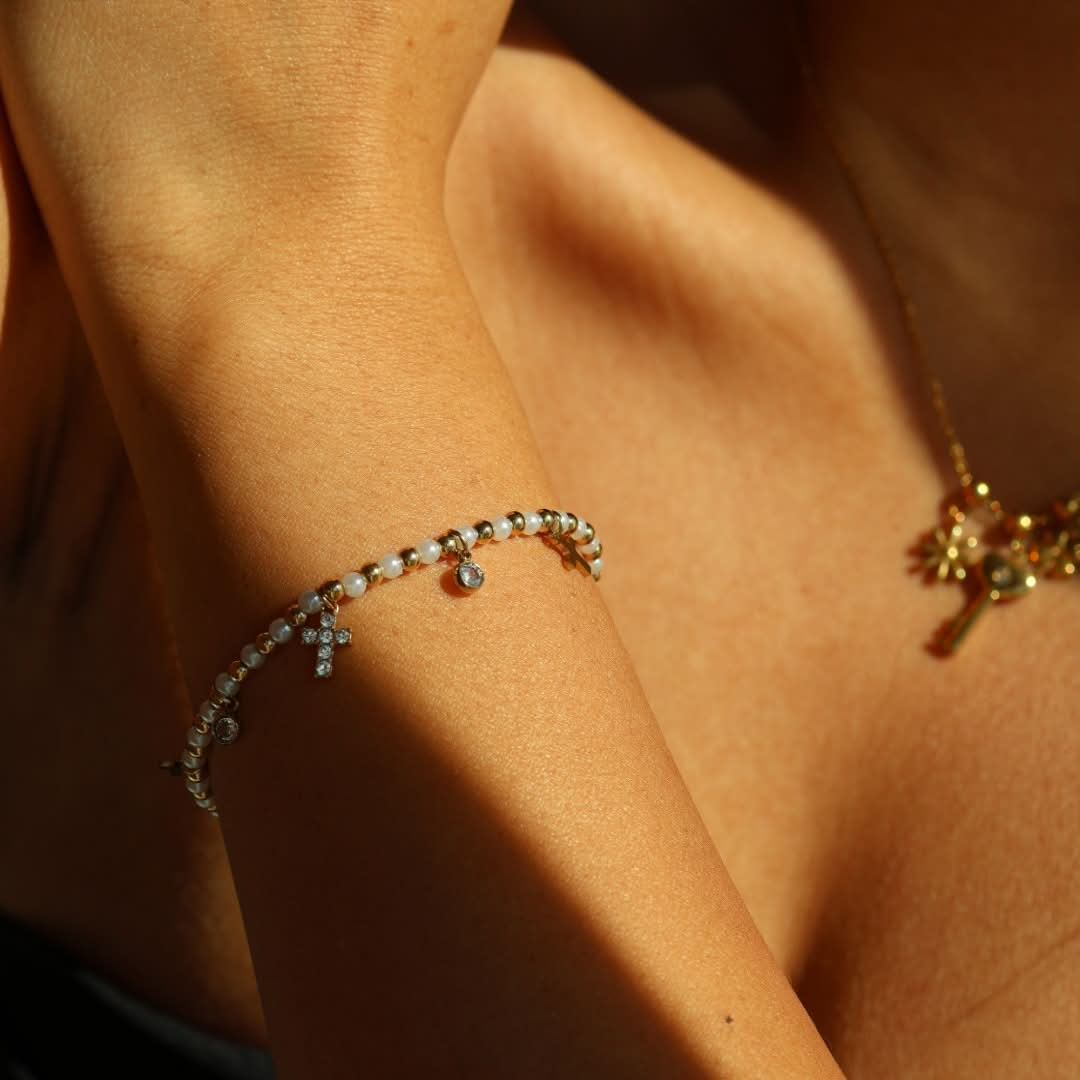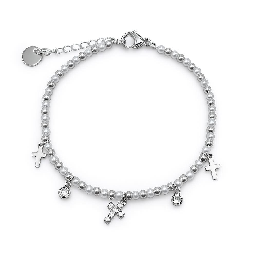 Bracciale donna in acciaio con pendente croce- Croce Perlina