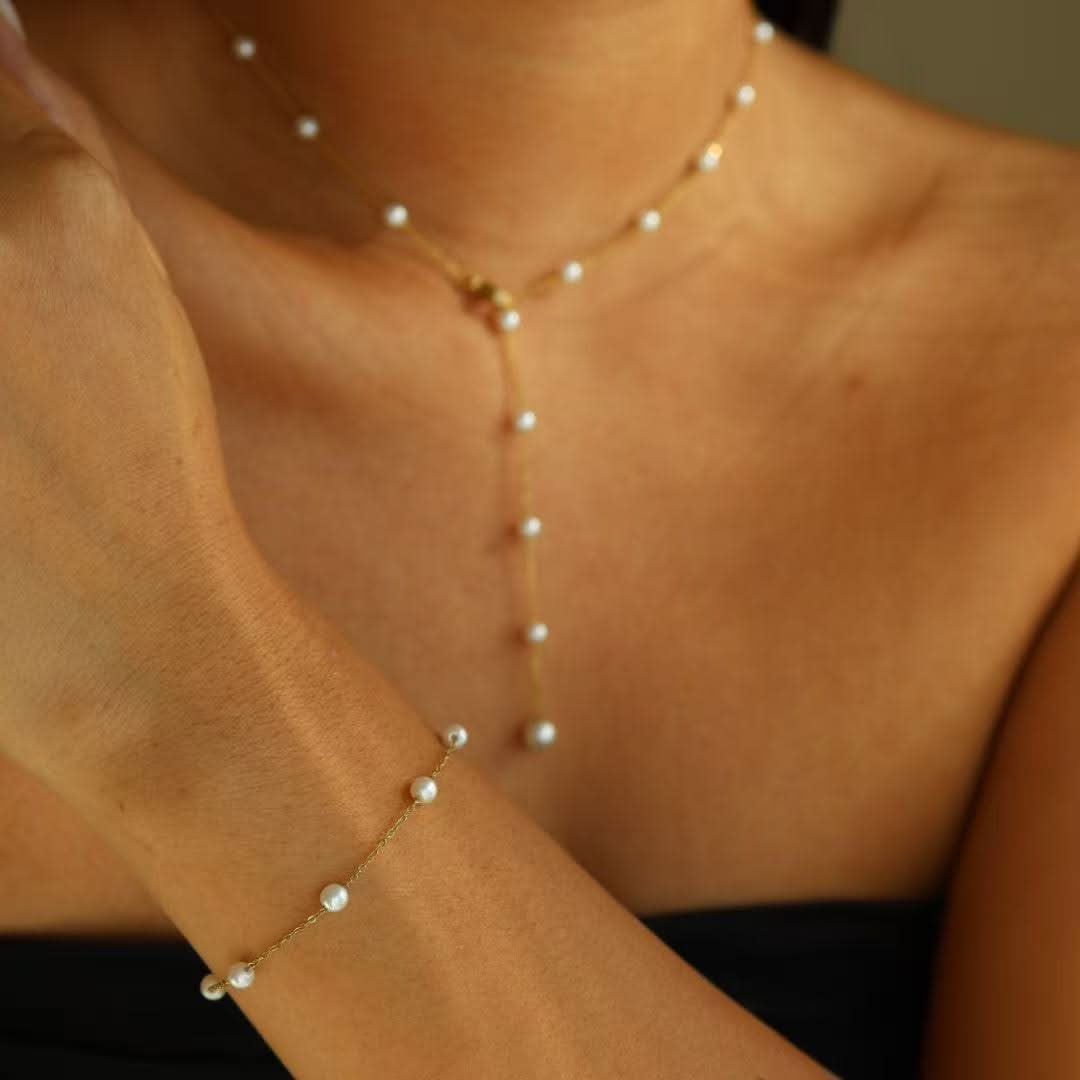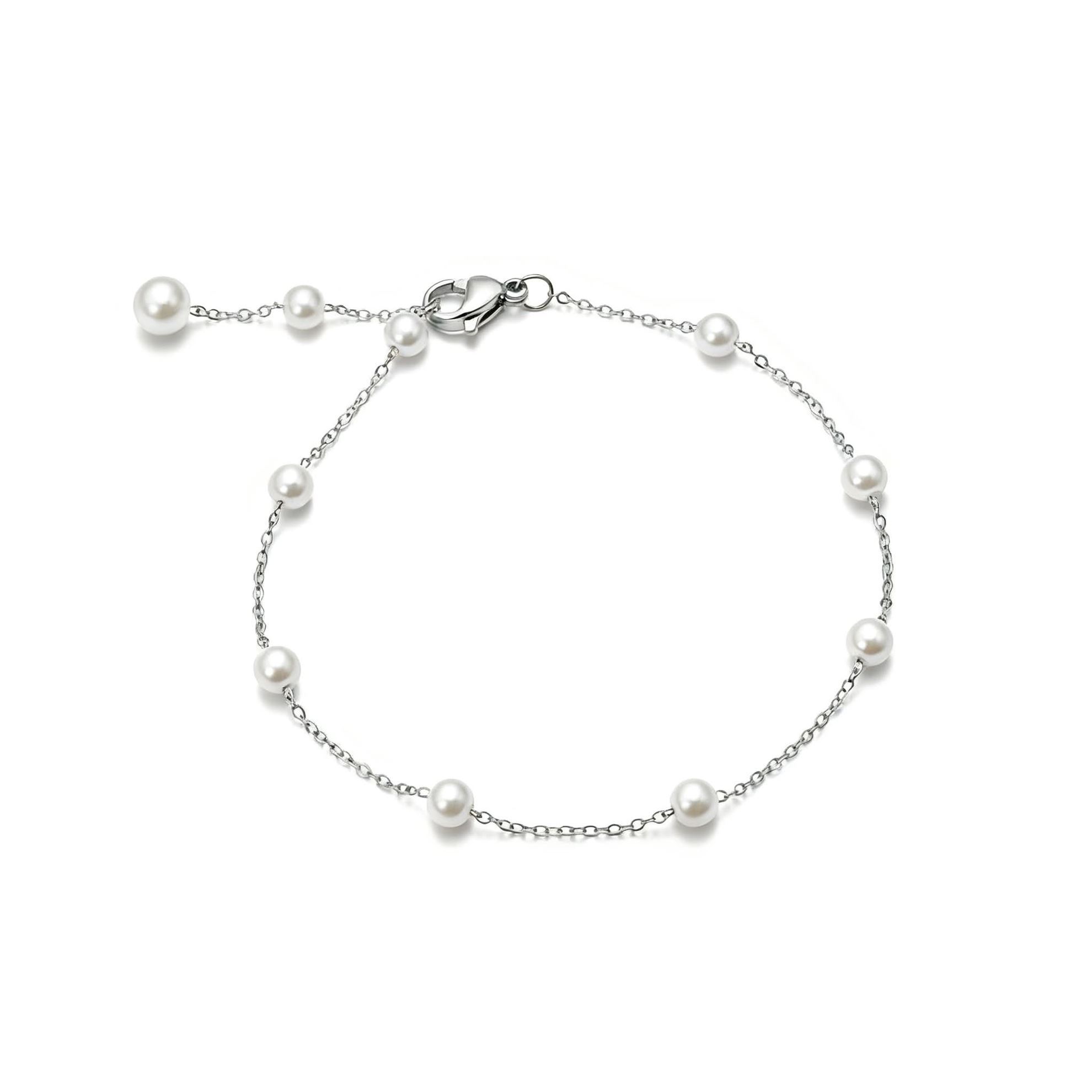 Bracciale donna regolabile acciaio -Perlina
