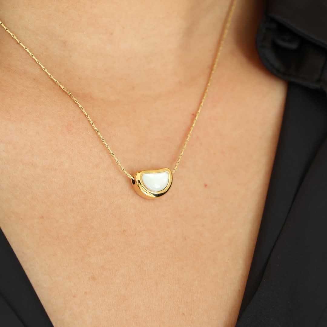 Collana Acciaio Inox Madreperla Donna Water Proof - Bean gold