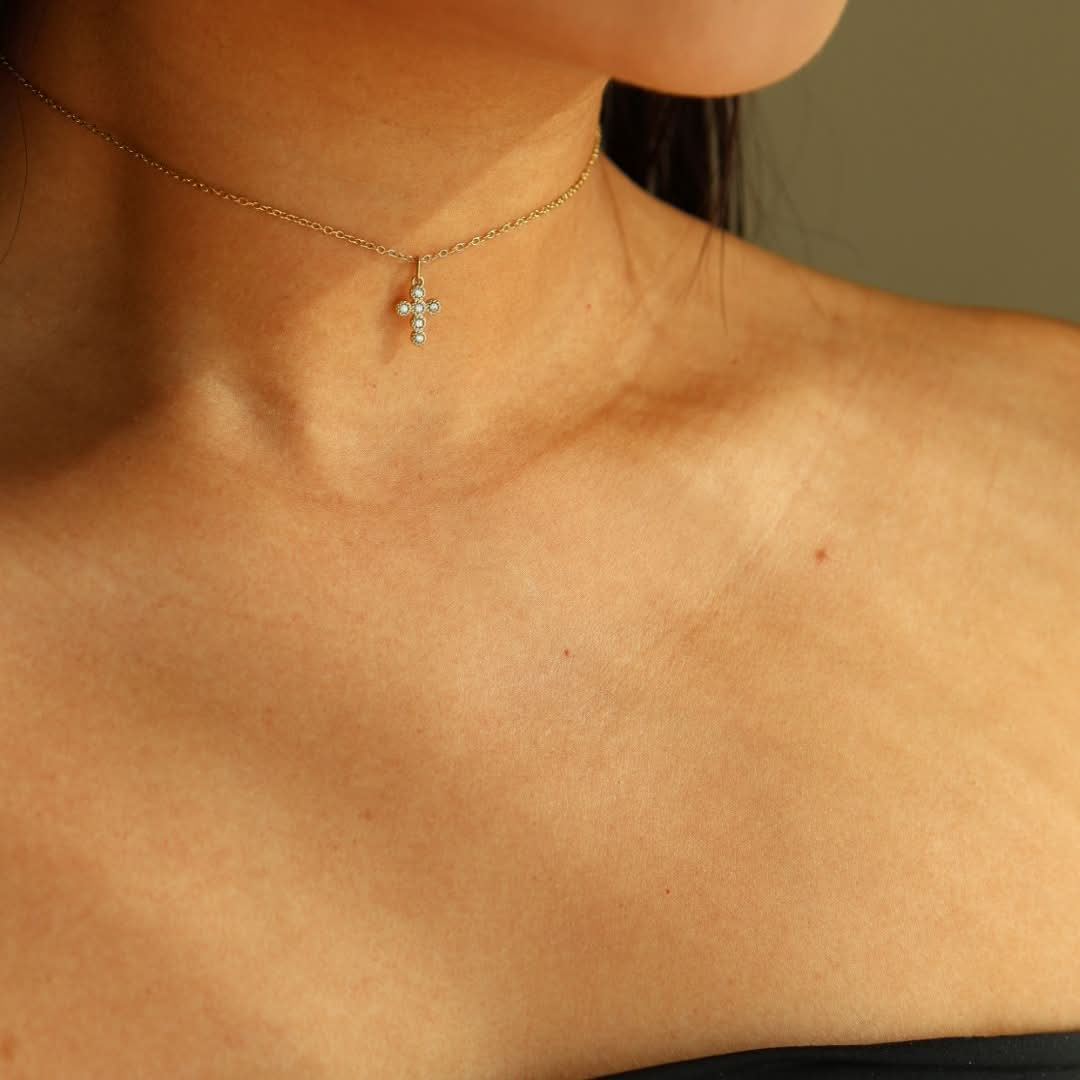 Collana catenina Zirconi Acciaio Inox Filo Croce - INCANTO Unisex