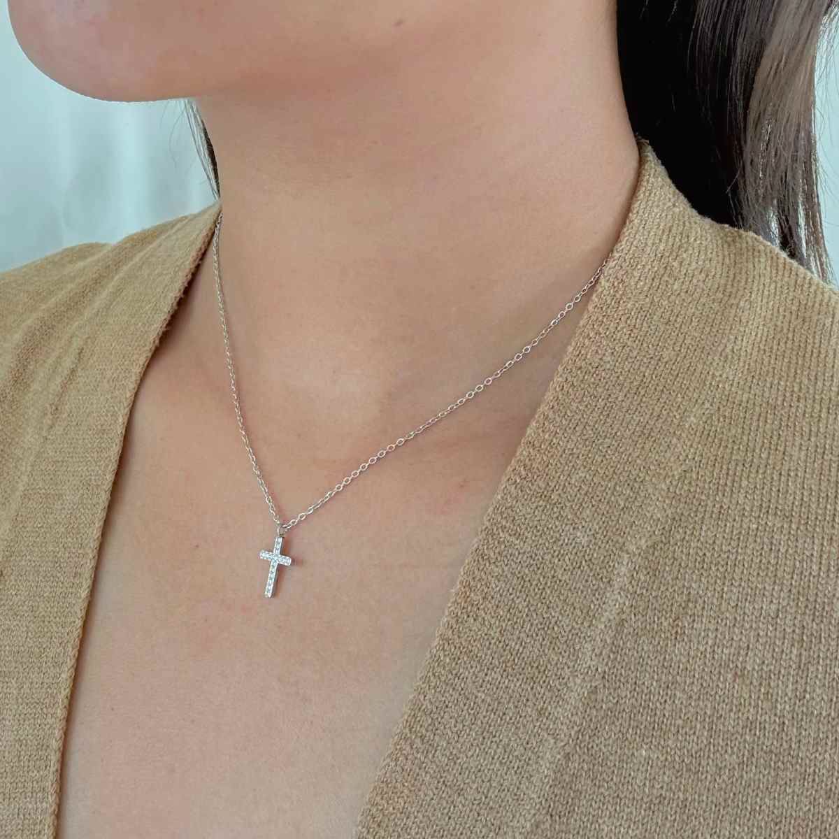 Collana Acciaio Inox Zirconi unisex - Croce Classic