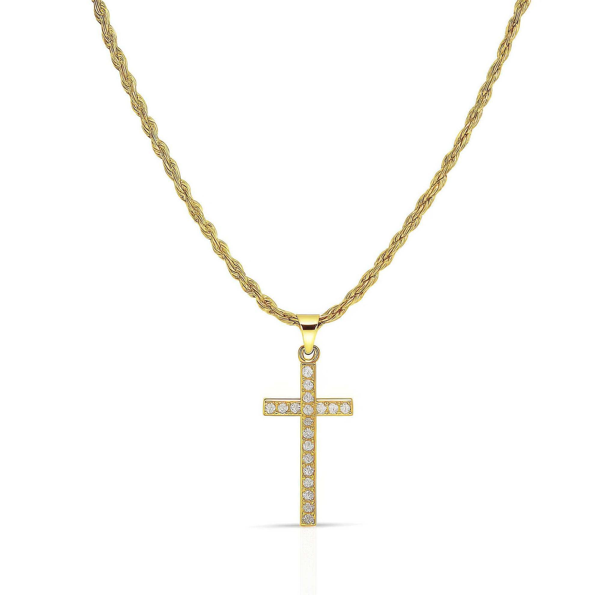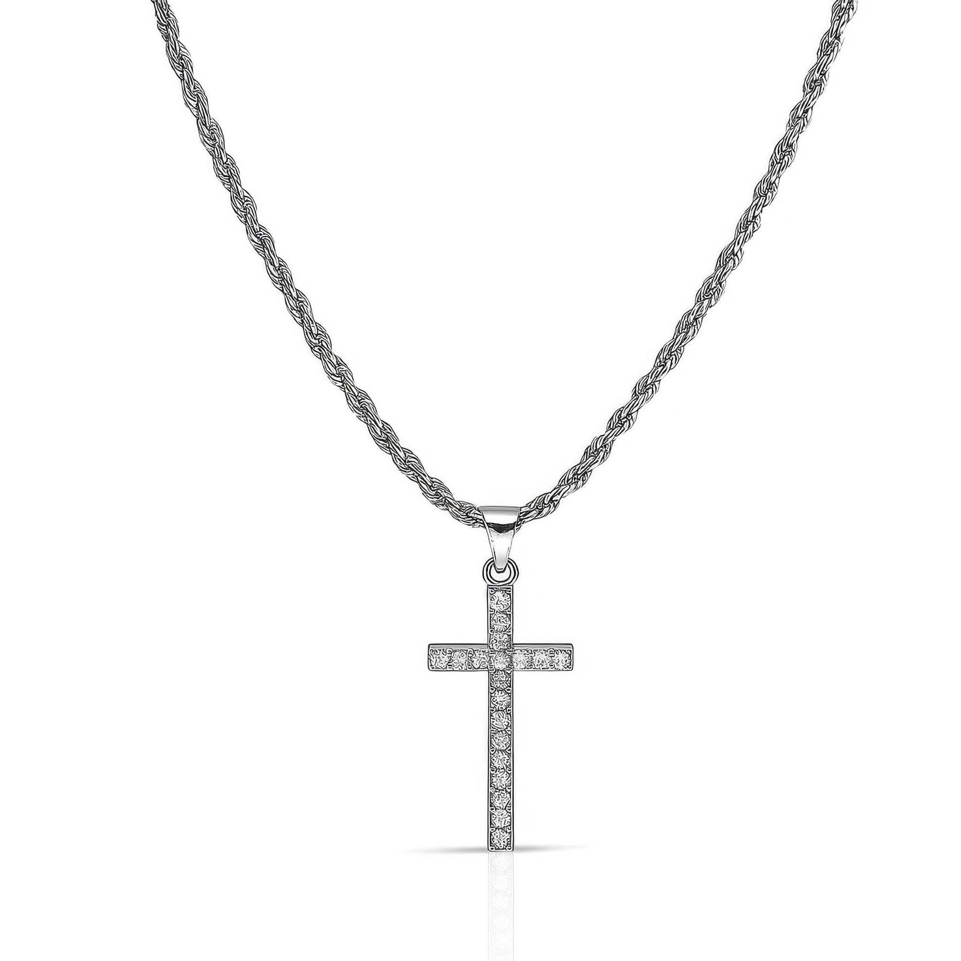 Collana Acciaio Inox Zirconi Unisex - Croce Grande