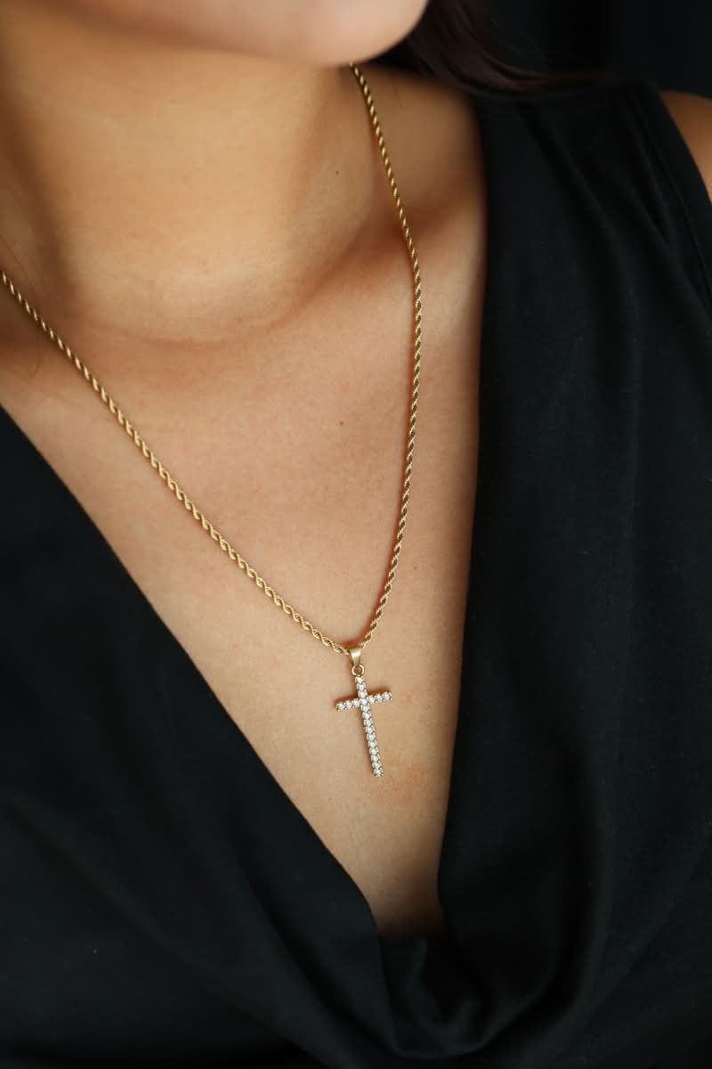 La Collana Croce Grande  vanta un design audace: un pendente a forma di croce, con misure di 15mm X 30mm,