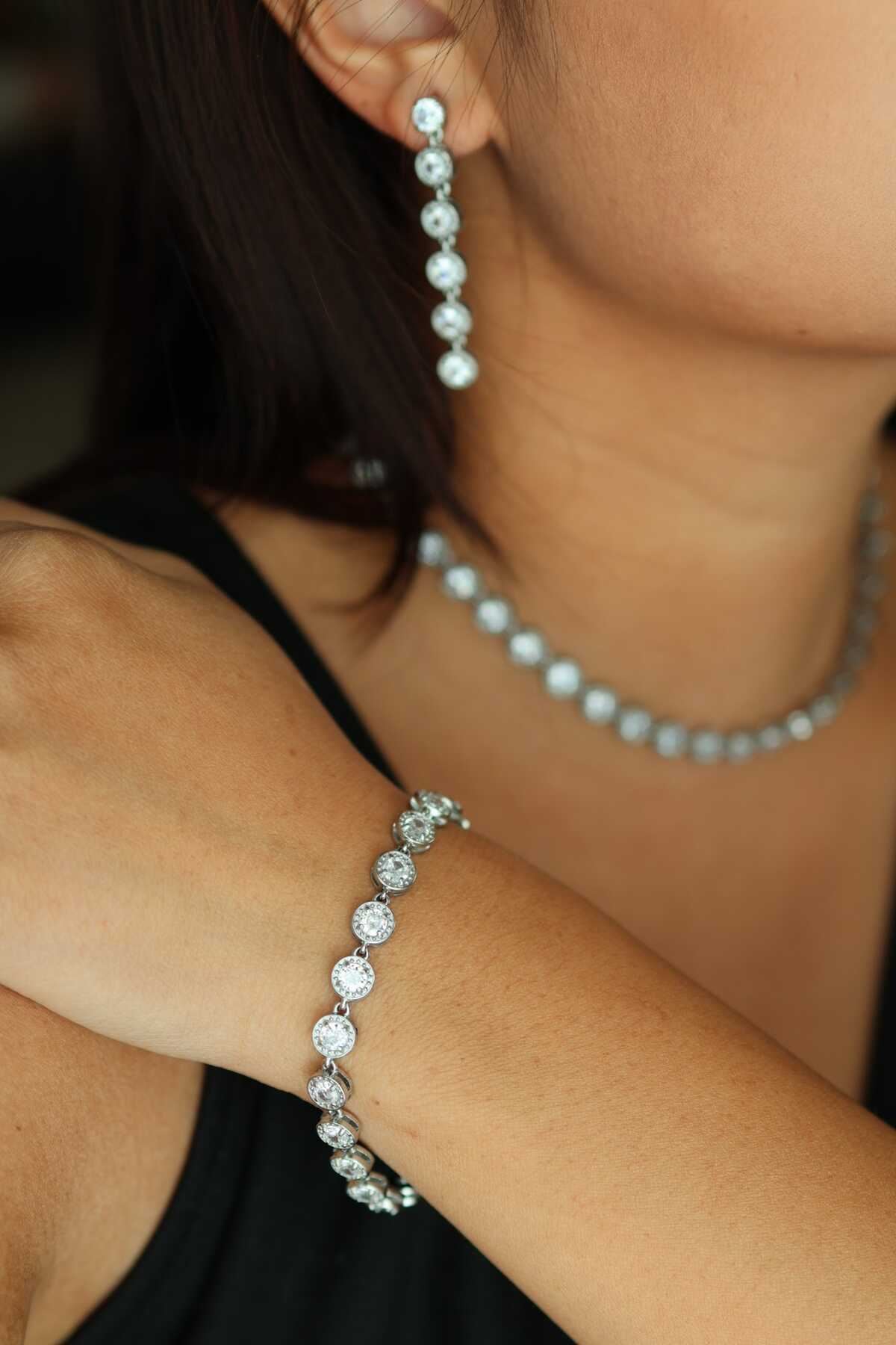 Bracciale tennis taglio round in acciaio- Lucky