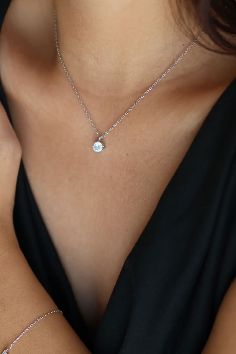 Il pendente, a forma di goccia, è il vero e proprio fulcro di questa collana. Abbellito da una scintillante zircone, dona al pezzo un bagliore affascinante e un tocco di lusso, che cattura la luce in modo magico. La finitura disponibile in argentato e oro aggiunge un'aria di sofisticazione e eleganza.