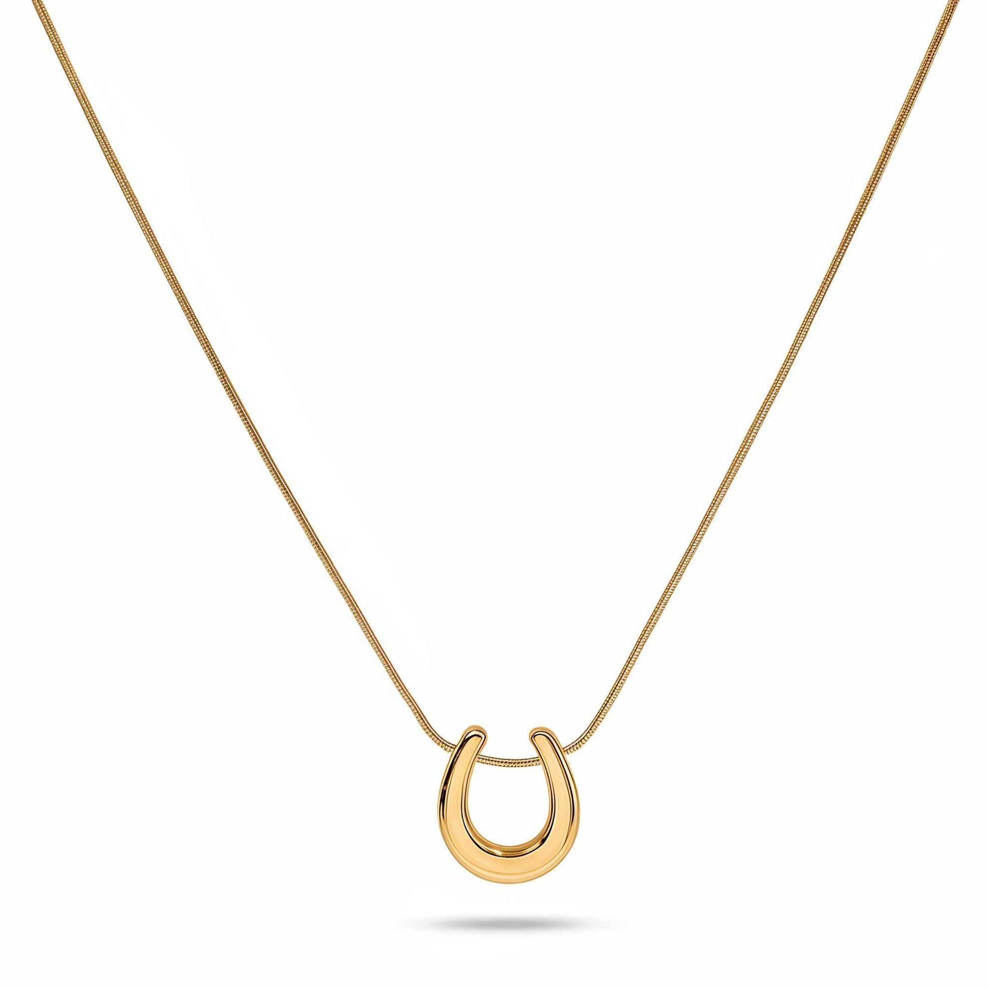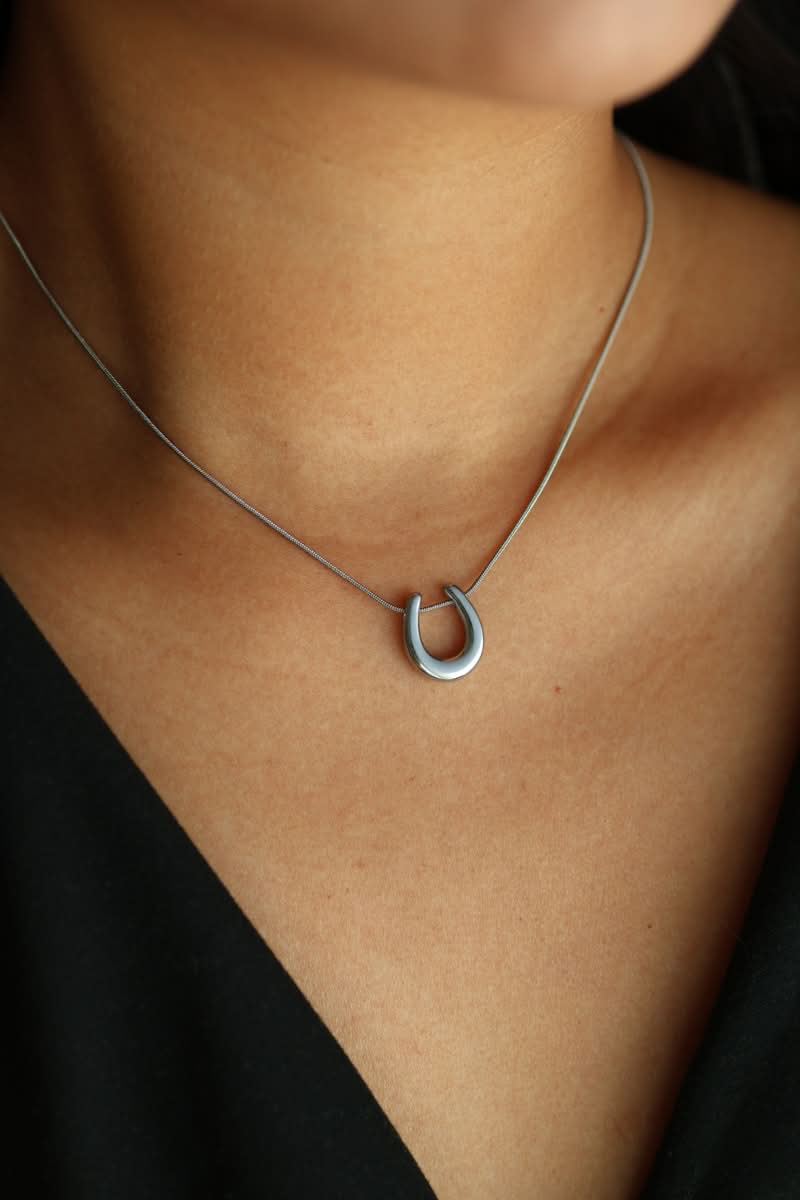 Questa collana presenta un pendente a forma di ferro di cavallo, simbolo di fortuna e protezione, che dona un'aria di modernità e significato. Disponibile nei colori argento e oro, con una lunghezza regolabile tra i 40cm e i 45cm per adattarsi a qualsiasi preferenza di portata.