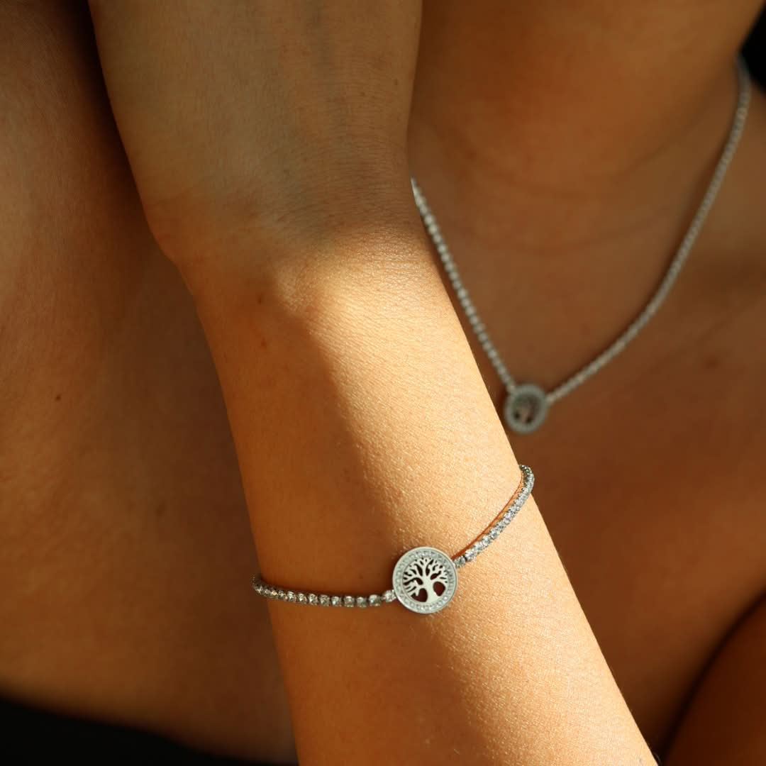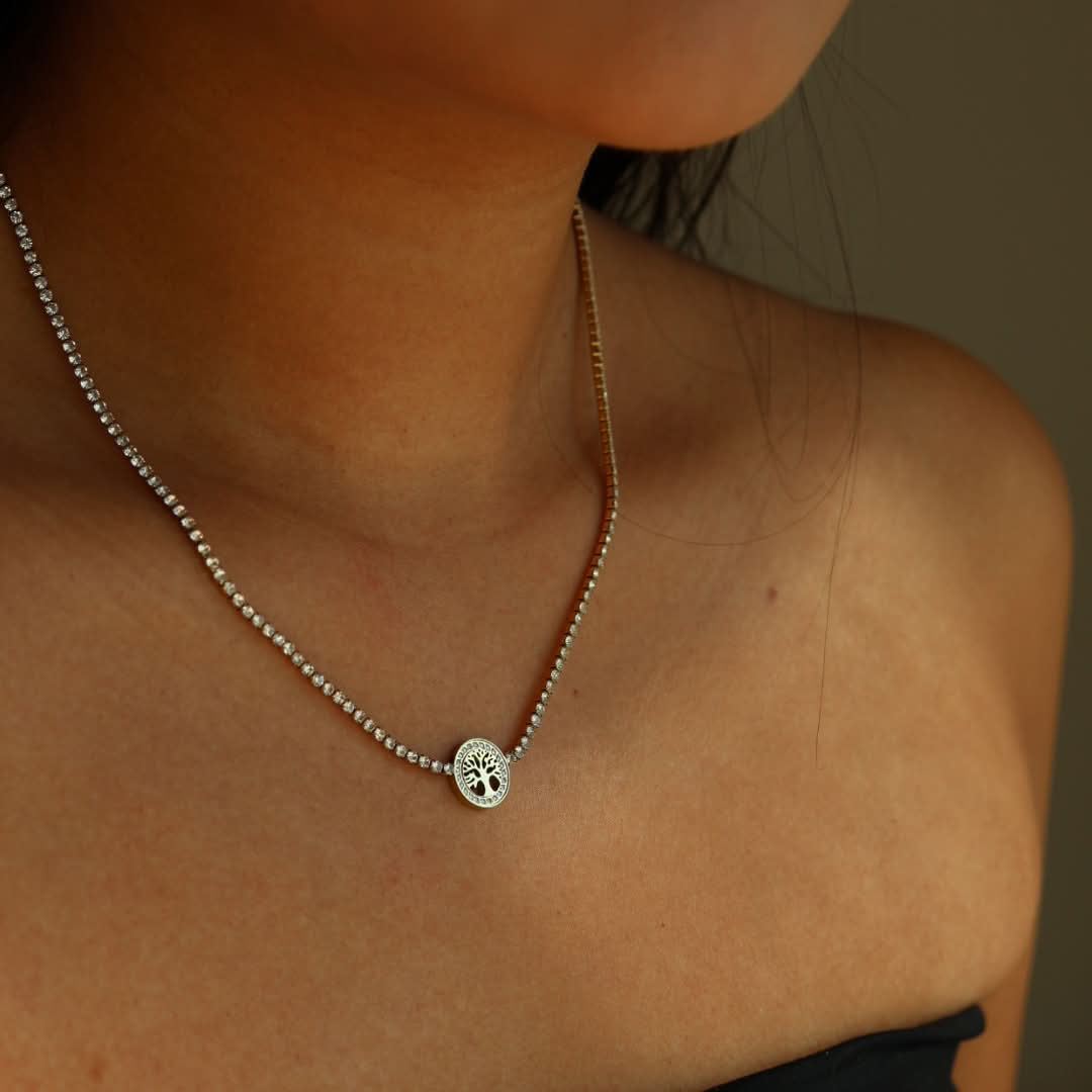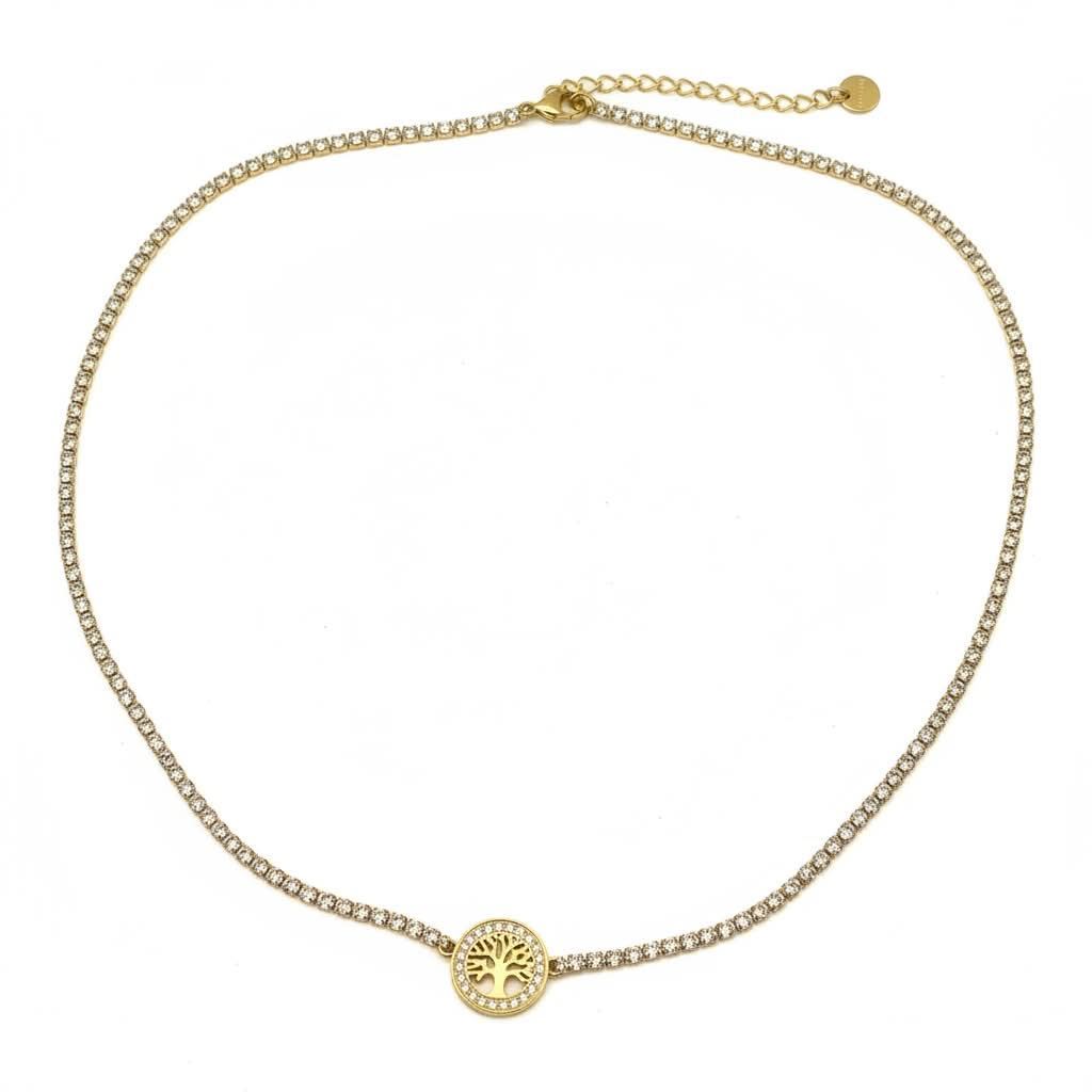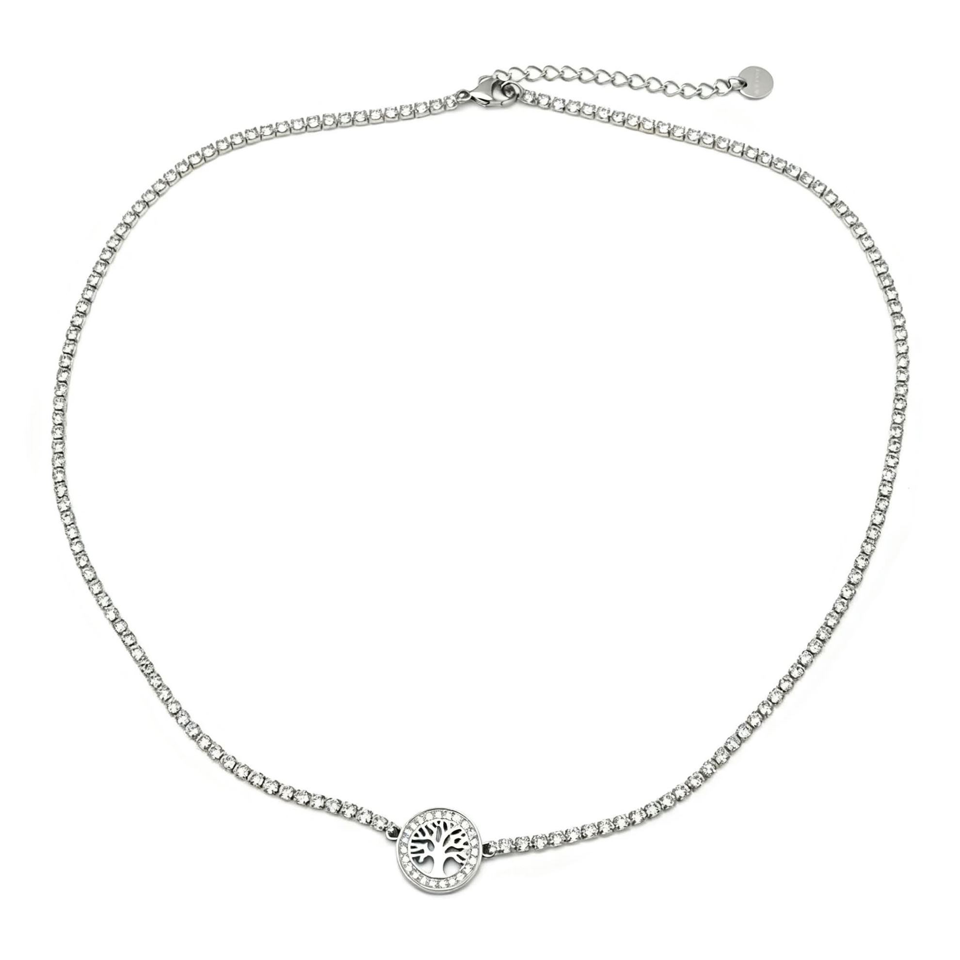 Collana Albero di Vita Acciaio Inox Brillantini Zirconi - Tree Life