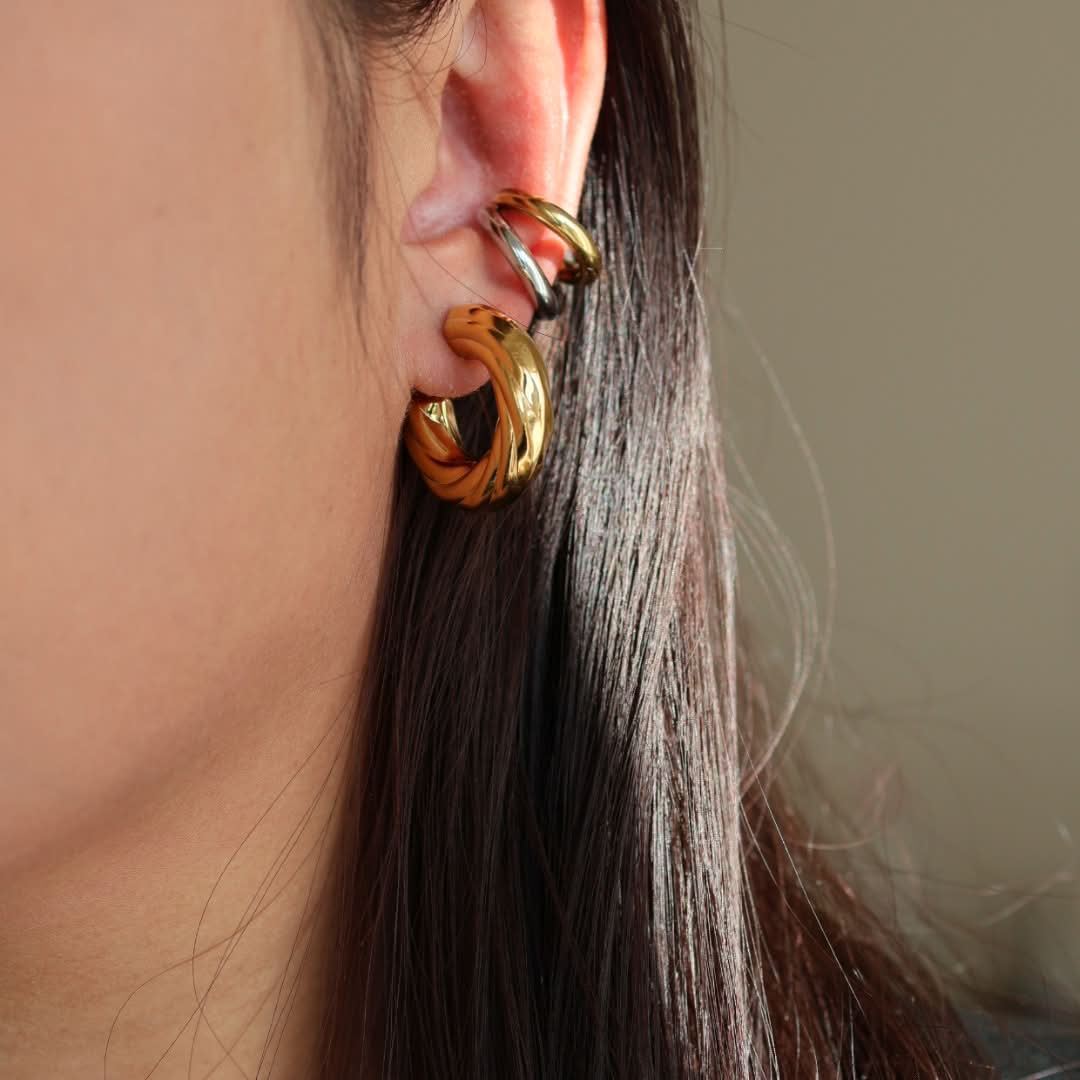 Ear Cuff Bicolor Acciaio Inox Simple Donna Water Proof - Twinkie