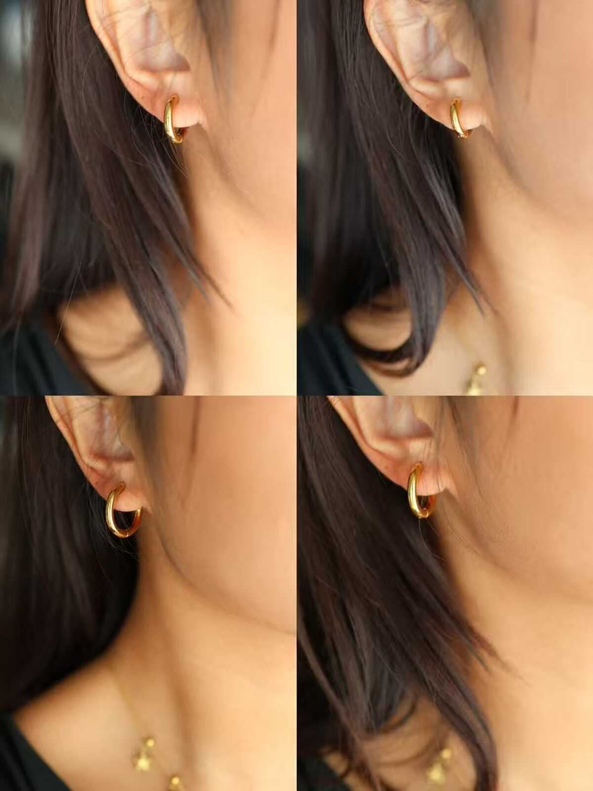 Questi orecchini presentano un design a cerchietto semplice ma accattivante, disponibile in diverse ampiezze per soddisfare ogni preferenza: