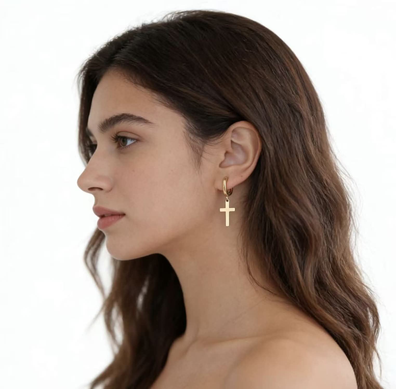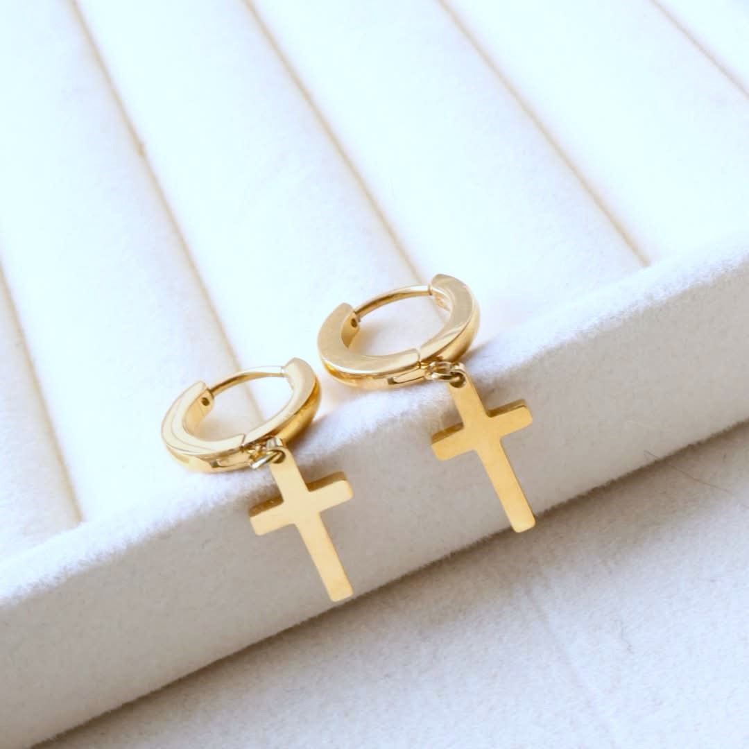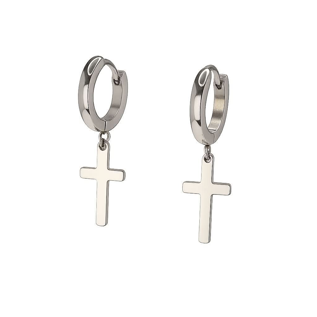 Orecchini Cerchio Croce Acciaio Inox Basic Unisex - Cross Simple