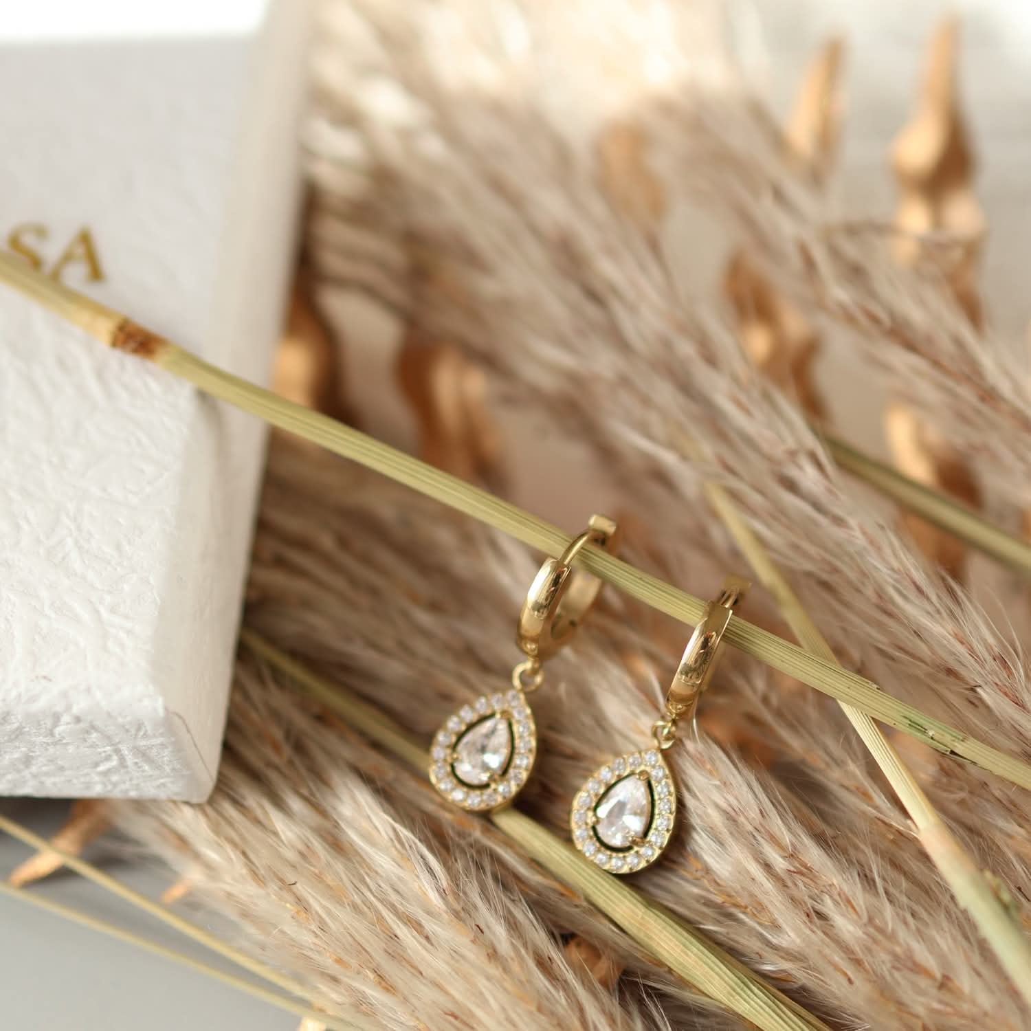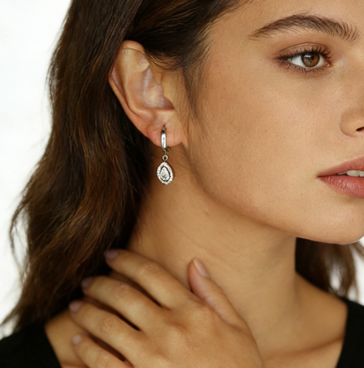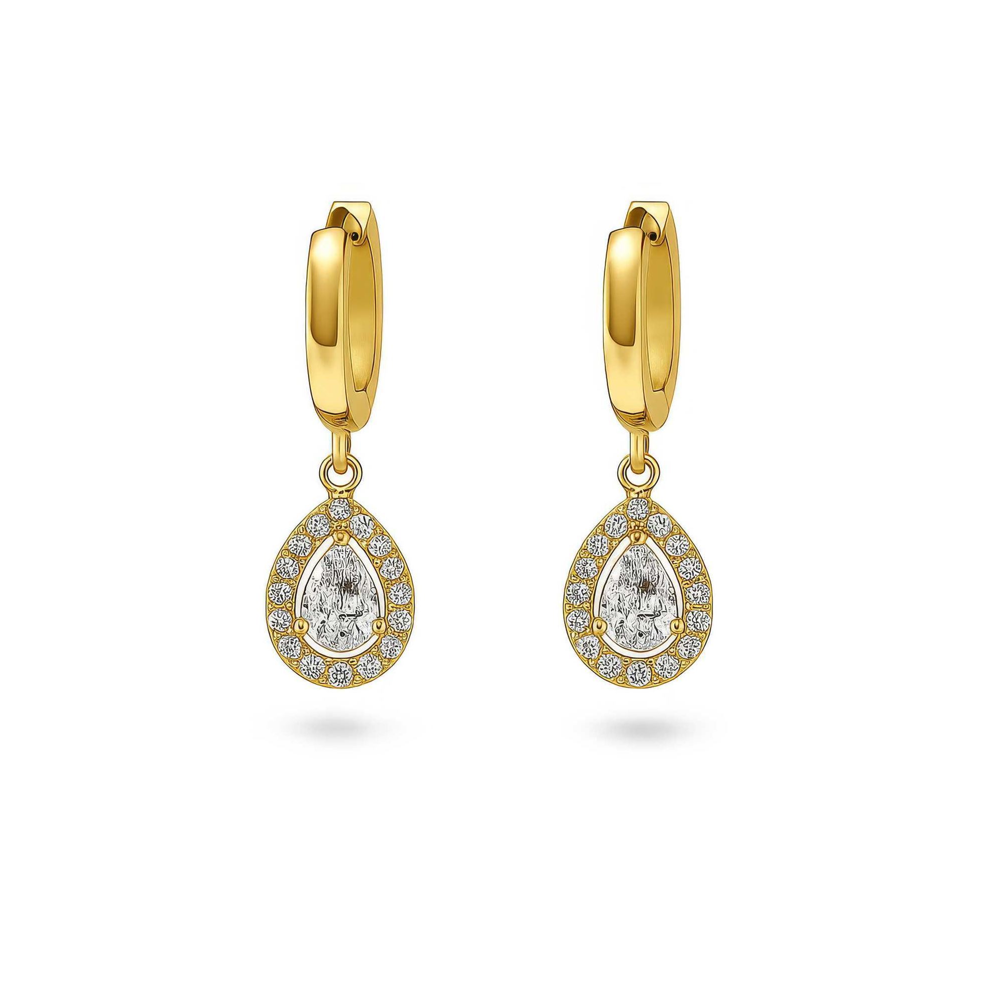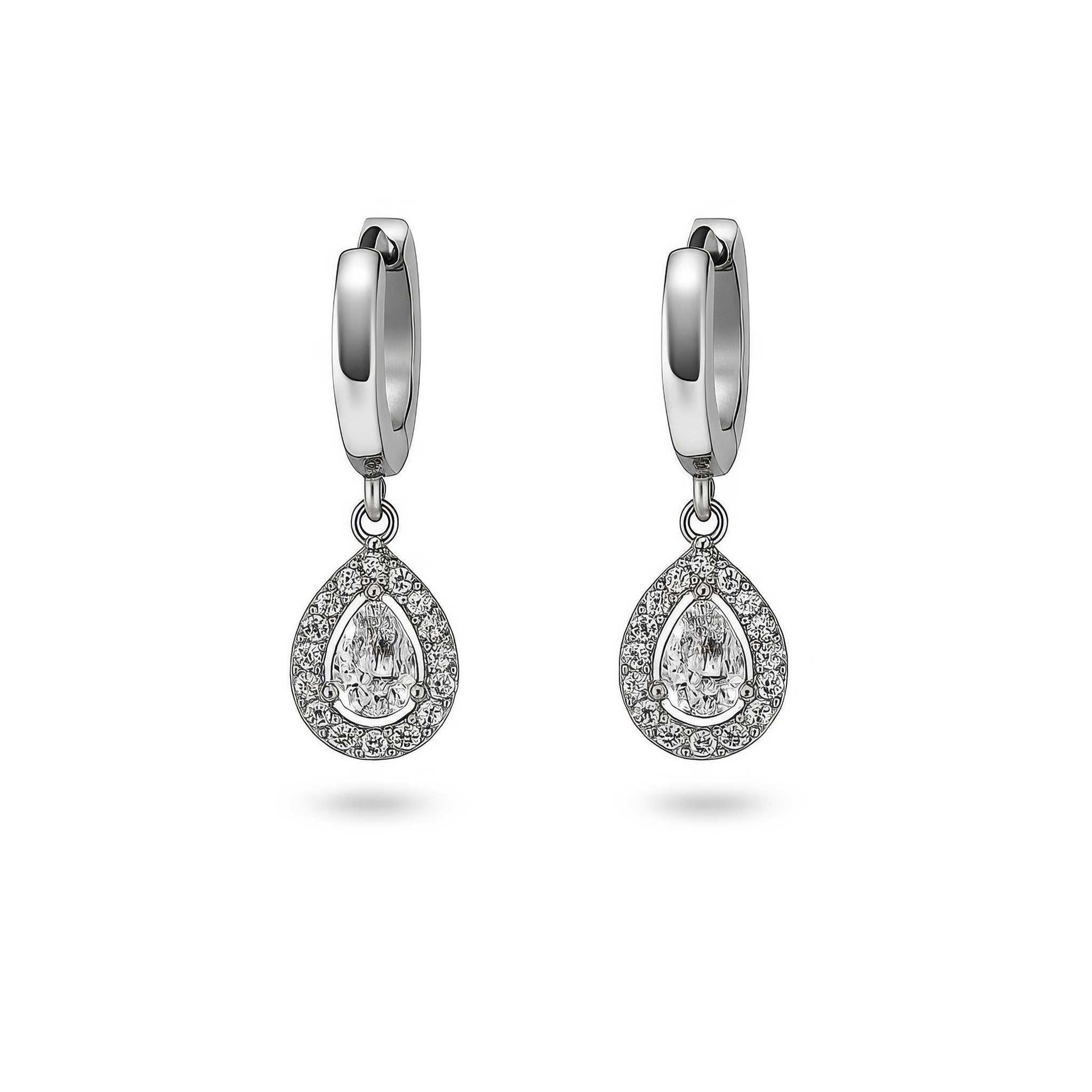 Orecchini pendente a Goccia Zirconi Acciaio Inox Elegante Donna - Luminosa Goccia