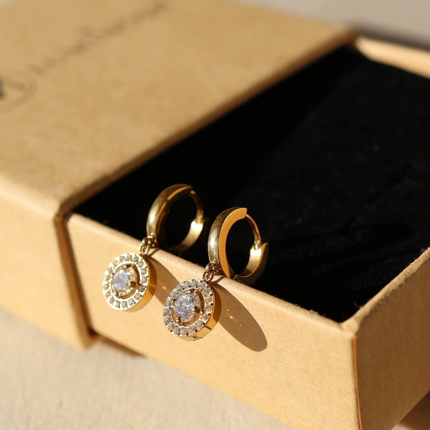 Orecchini Pendente tondo Zirconi Elegante Donna - Luminosa Sfera