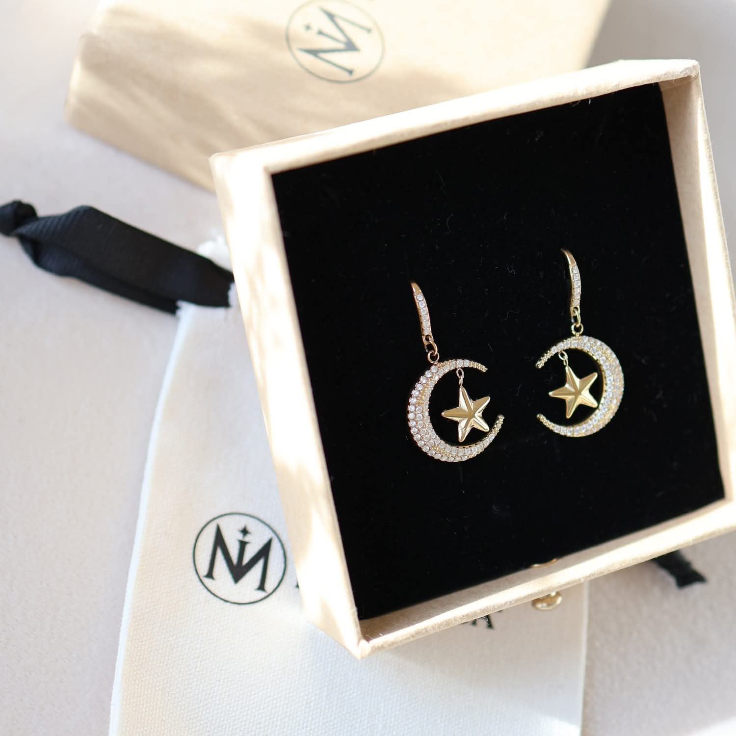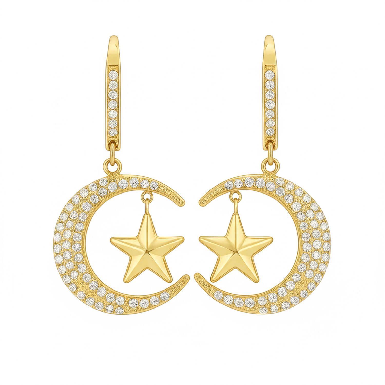 Orecchini Stella Luna Zirconia elegante donna - Sirra